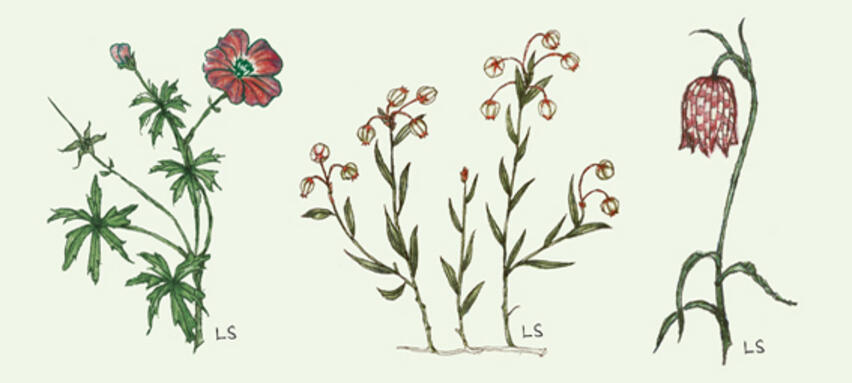 Wir haben diesen einmaligen Satz von fünf Grußkarten aus Motiven erstellt, die Loki Schmidt im Laufe vieler Jahre entweder zur Vorstellung der "Blume des Jahres" oder für Porzellanteller und -tassen gestaltete.