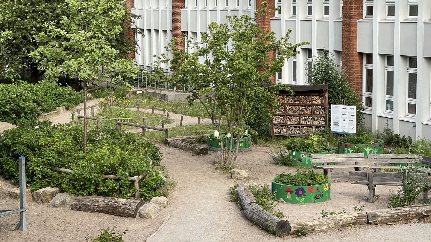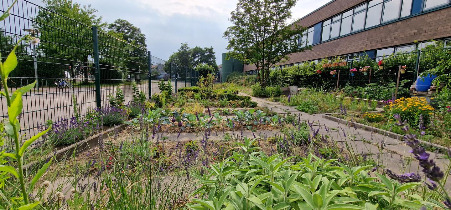 In diesem Projekt wurde die Schule von Schülern verschiedener Klassenstufen in ein blühendes Insekten-, Vogel- und Menschenparadies verwandelt. Die Beete auf fast dem gesamten Schulgelände wurden seit 2016 umgestaltet in Obst- und Gemüsegärten. Außerdem stehen eine Wildblumenwiese, eine stickstoffliefernde Blühwiese für das Kartoffelbeet und artendiverse Neupflanzungen statt Hainbuchenwüste auf dem Programm.