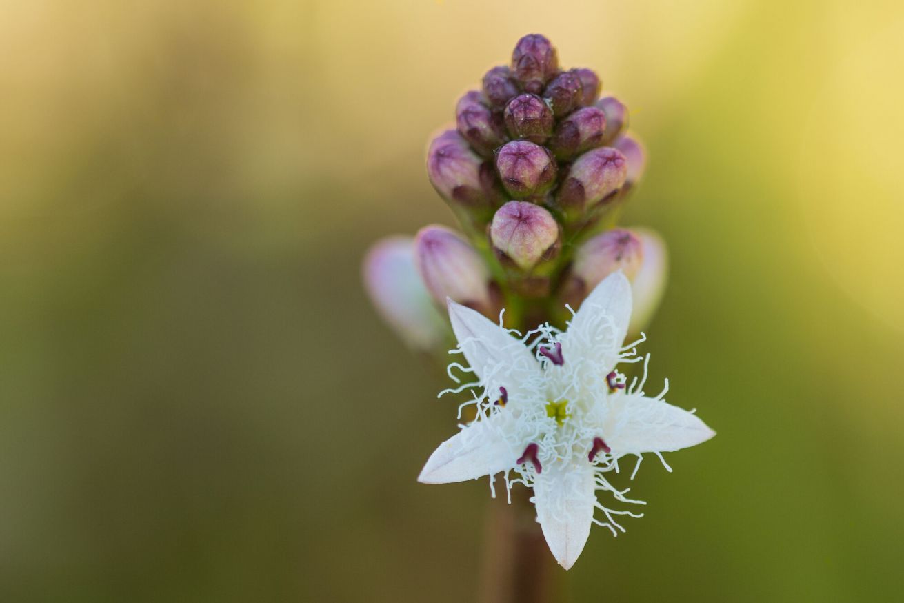 Fieberklee ist ein Multitalent und wird Naturfreunde ein Jahr lang in die Welt der Moore, Sümpfe und Feuchtwiesen führen. Denn dort ist er zuhause. Die mehrjährige Sumpfblume ist eine typische Art der Übergangsmoore und bereitet als Frühbesiedlerin in Verlandungszonen anderen Pflanzenarten den Weg. Sie ist nahezu perfekt an diese Lebensbedingungen angepasst, denn ihre hohlen Stängel und Blattstiele dienen dem Auftrieb und der Durchlüftung am Wasserstandort. Seine ganze Schönheit stellt der Fieberklee dann zwischen April und Juni zur Schau, wenn er mit seinen zarten, weißen und auffällig stark bewimperten Blüten vor allem Hummeln zu Tisch bittet.