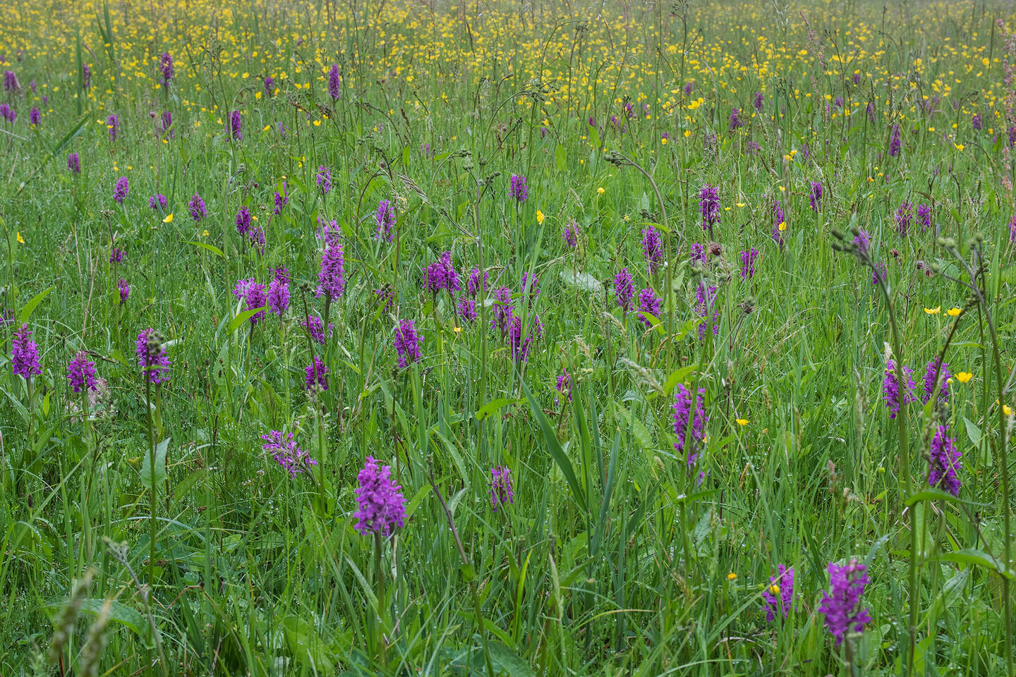 Auch in Hamburg, Niedersachsen und Mecklenburg-Vorpommern konnten wir weitere Flächen, darunter Moore und Auwald-Entwicklungsflächen, erwerben. Im Rambower Moor in Brandenburg, einem der schönsten Durchströmungsmoore Deutschlands, haben wir 12 Hektar wertvolle Moorflächen gekauft. Artenreiches, feuchtes Grünland mit Breitblättrigem Knabenkraut (Foto), Wiesenraute und Sumpf-Dotterblume zeichnen das Gebiet aus. Auch eine große Moorfroschpopulation ist hier noch zu finden, zudem ist das Rambower Moor auch ein bedeutender Rast- und Schlafplatz für Kraniche.