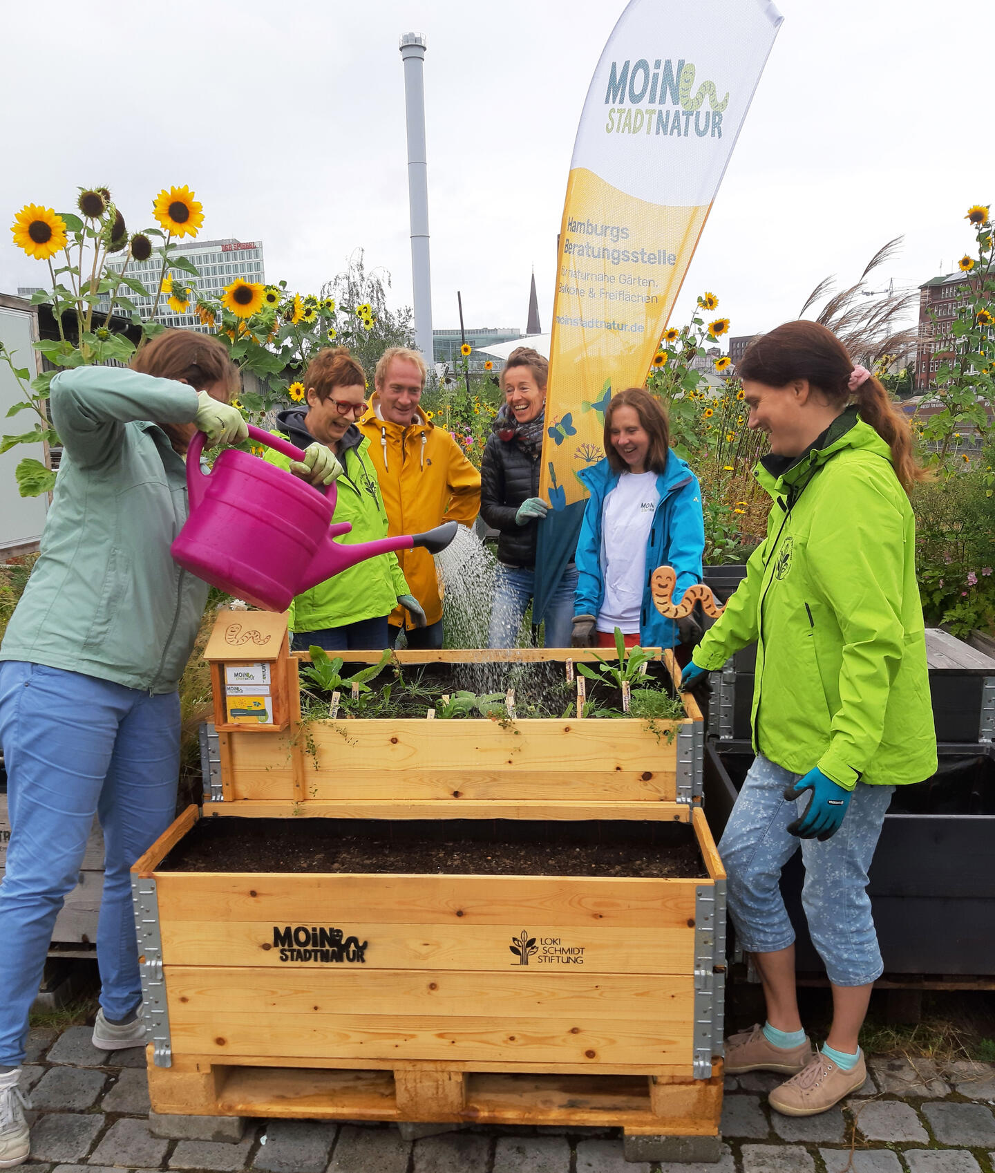 Bepflanzung und Einweihung von Hochbeeten im Oberhafengarten