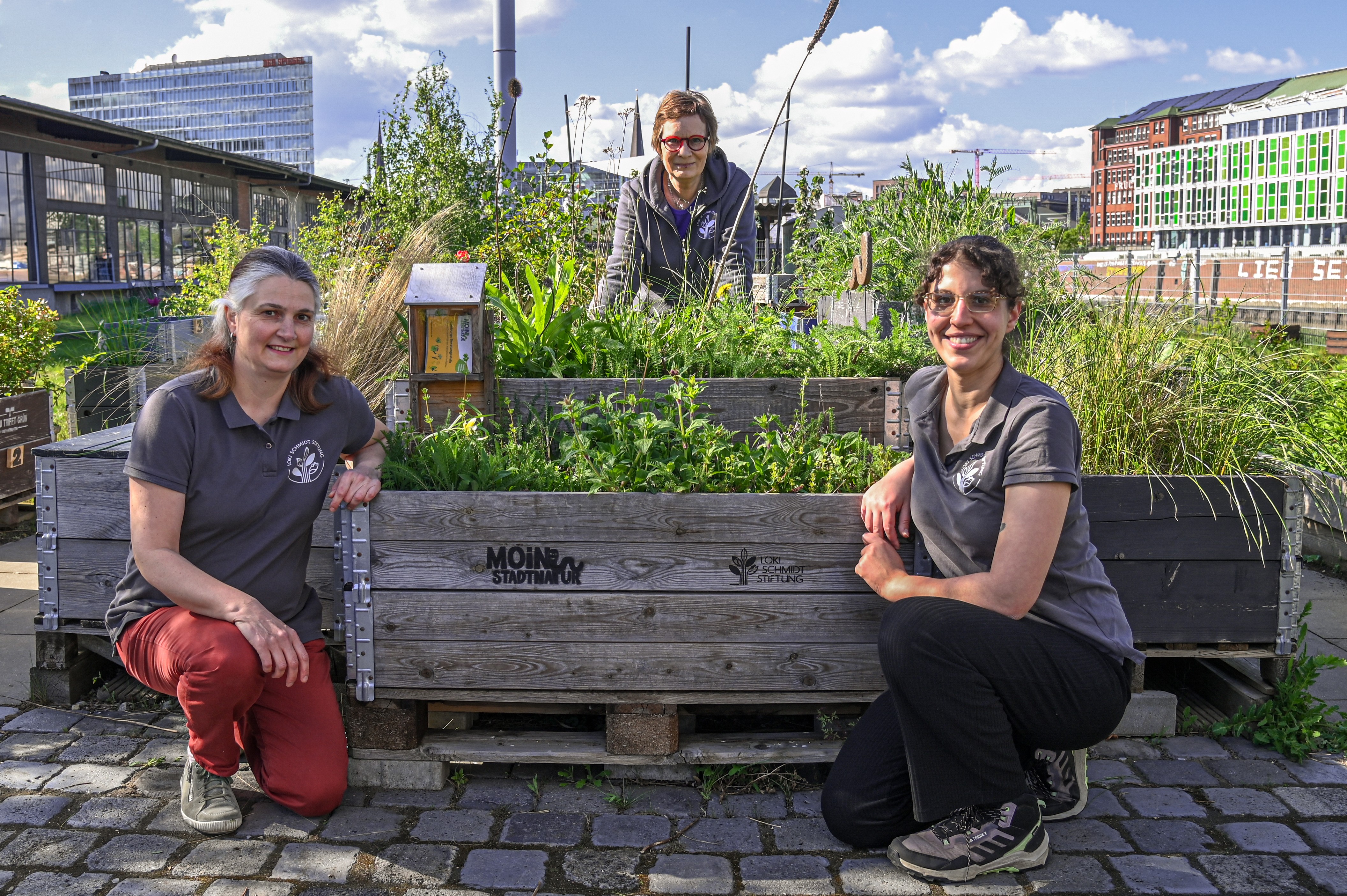 Im Einsatz für die Artenvielfalt_Viola Bödewadt, Christine Stecker (Projektleitung) und Amira Elatawna von MOIN STADTNATUR (Foto: Loki Schmidt Stiftung)