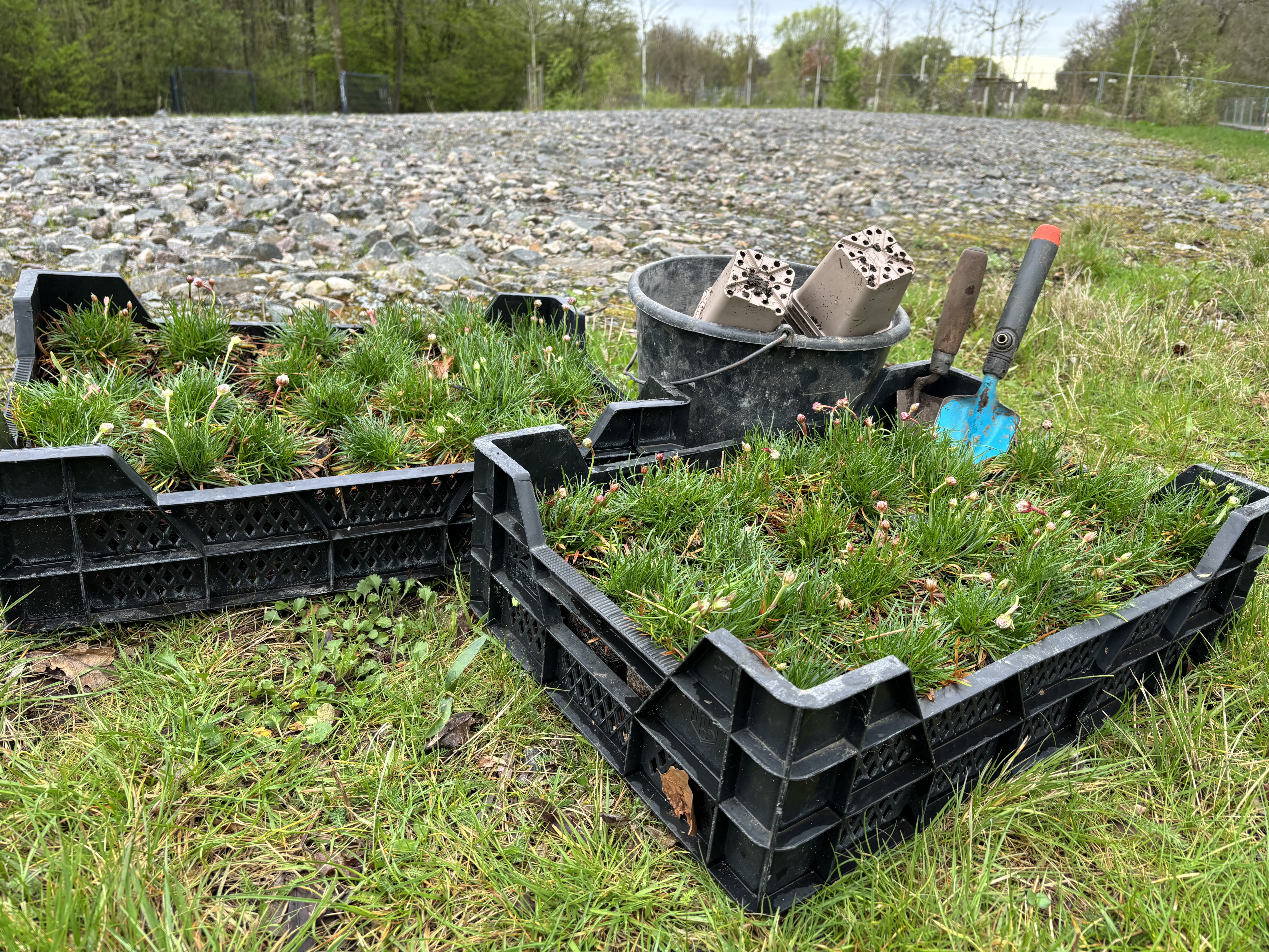 Alles ist bereit zum Pflanzen: 48 Grasnelken haben im Wilhelmsburger Inselpark einen neuen Lebenraum gefunden – Loki Schmidt Stiftung