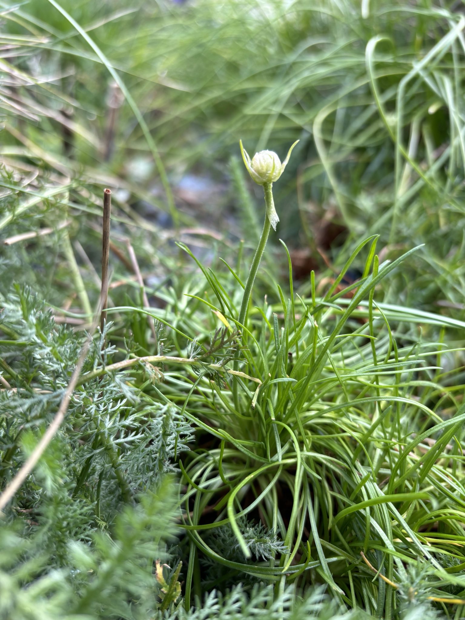Die ersten Knospen der Grasnelke sind bereits zu erkennen, ab Mai werden rosafarbene Blütenstände erstrahlen. – Loki Schmidt Stiftung