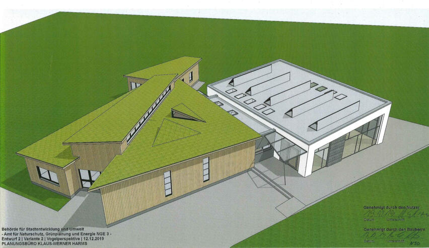 Endlich ist es soweit! Das Boberger Dünenhaus wird vergrößert, es erhält einen gläsernen Anbau.