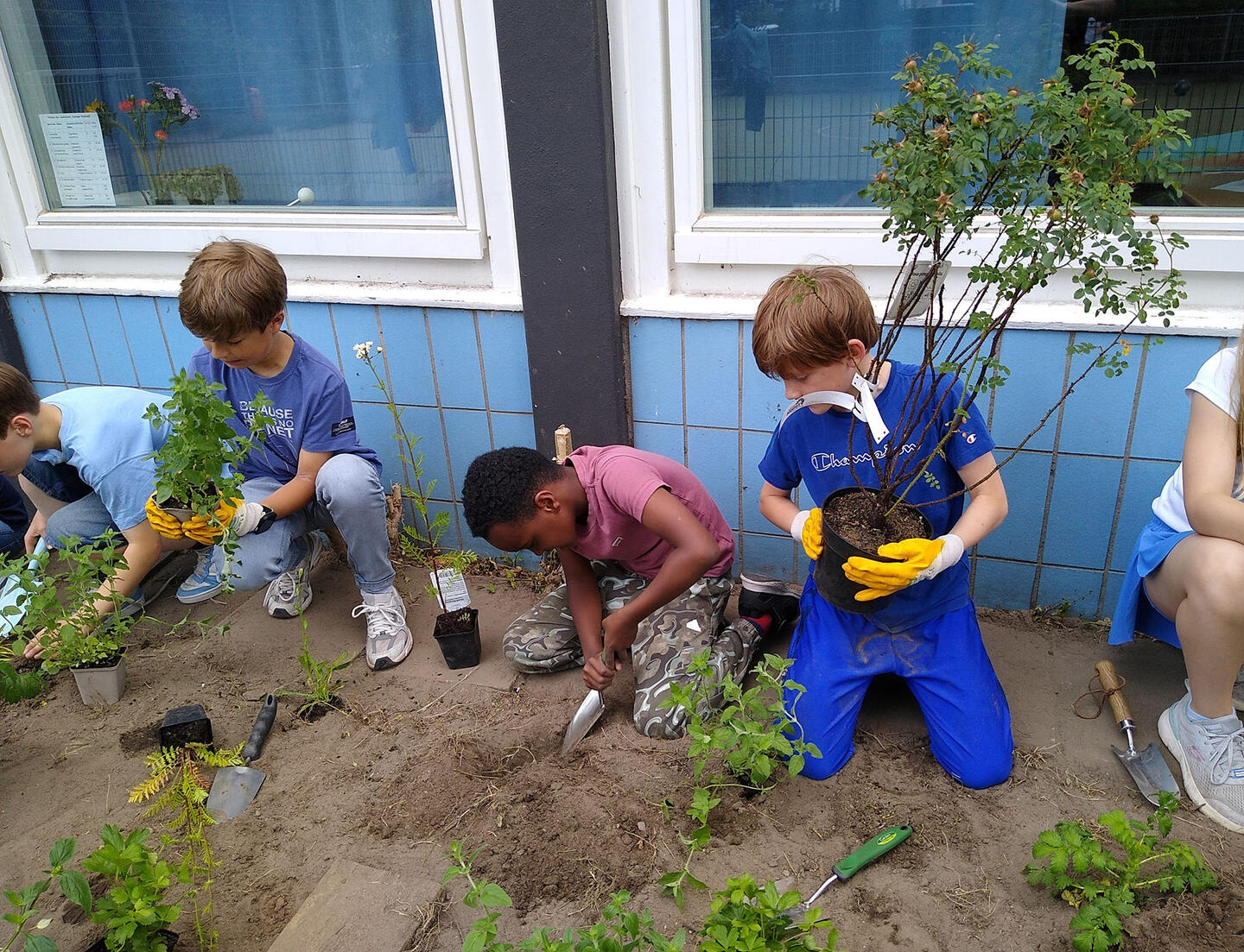 Nach dem Abriss zweier Klassenhäuser hat die Schule in Eigeninitiative eine Naturerlebnisfläche mit heimischen Wildpflanzen geschaffen. Die Klasse 4b produzierte dazu einen Garten-Rap über Wegerich, Löwenzahn und Brennnessel. Die 4c gestaltete eigene Videos – alles wächst nun dort auf dem Schulgelände. Unterstützt wurde das Projekt von einer Schulhof-AG mit Lehrkräften, Eltern, dem GBS-Team und dem Hausmeister.