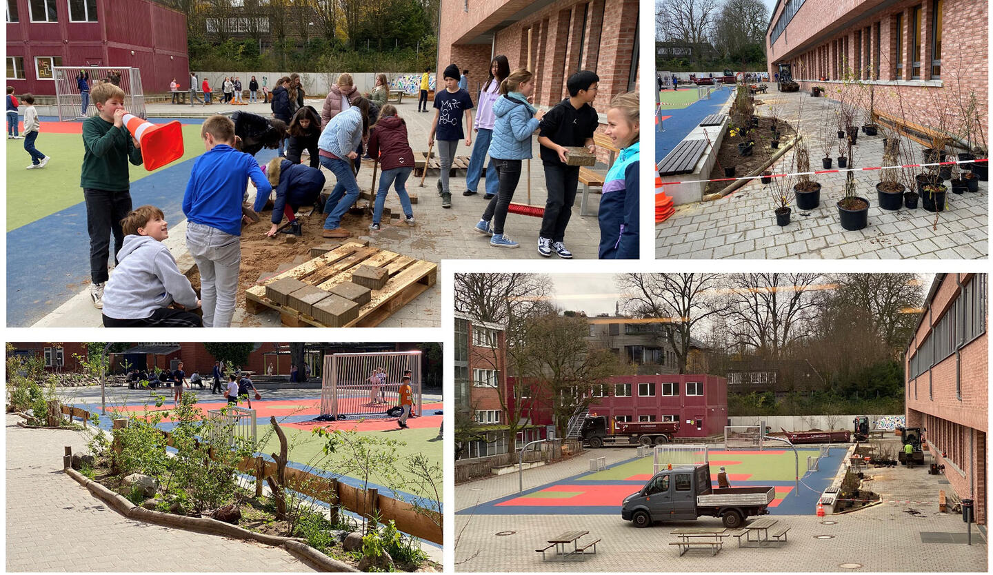 Aus einem eher tristen Schulhof ohne Partizipationsmöglichkeiten wurde ein naturnaher Lern- und Lebensraum, den die Kinder aktiv mitgestaltet haben. In einer Projektwoche entstanden Blühinseln, Sumpfbeete, ein Sandarium, ein Kräuterhochbeet und Nistplätze für Vögel und Insekten – viele Ideen kamen direkt von den Schüler*innen. Höhepunkt war die Mitmachbaustelle, bei der Kinder, Eltern und Lehrkräfte gemeinsam anpackten.