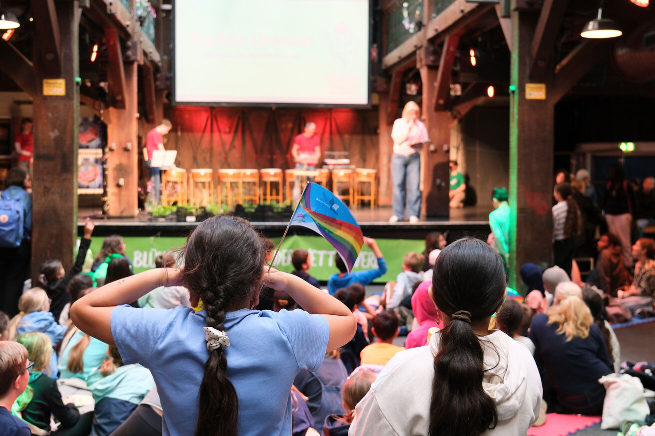 Beim Fest der Blühenden Schulen konnten sich die Schüler*innen aller teilnehmenden Schulteams sich an vielfältigen Mitmachständen kreativ betätigen. Unter der Moderation von Anke Harnack sowie mit Musikbegleitung der Percussion-Band TamTam, erlebten über 300 Schüler*innen gespannt, wer die ersten Plätze der „Blühenden Schulen 2025“ belegte.
