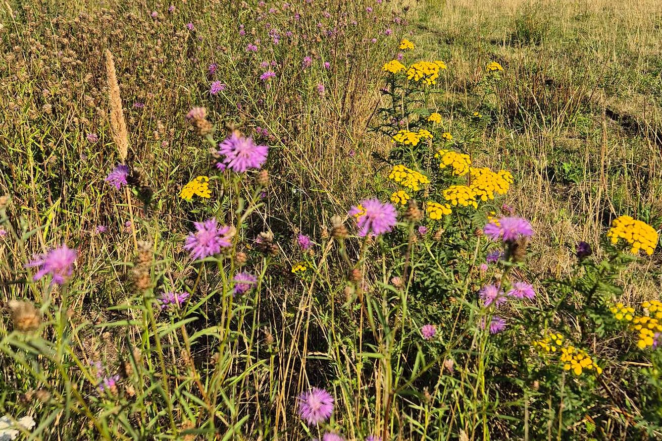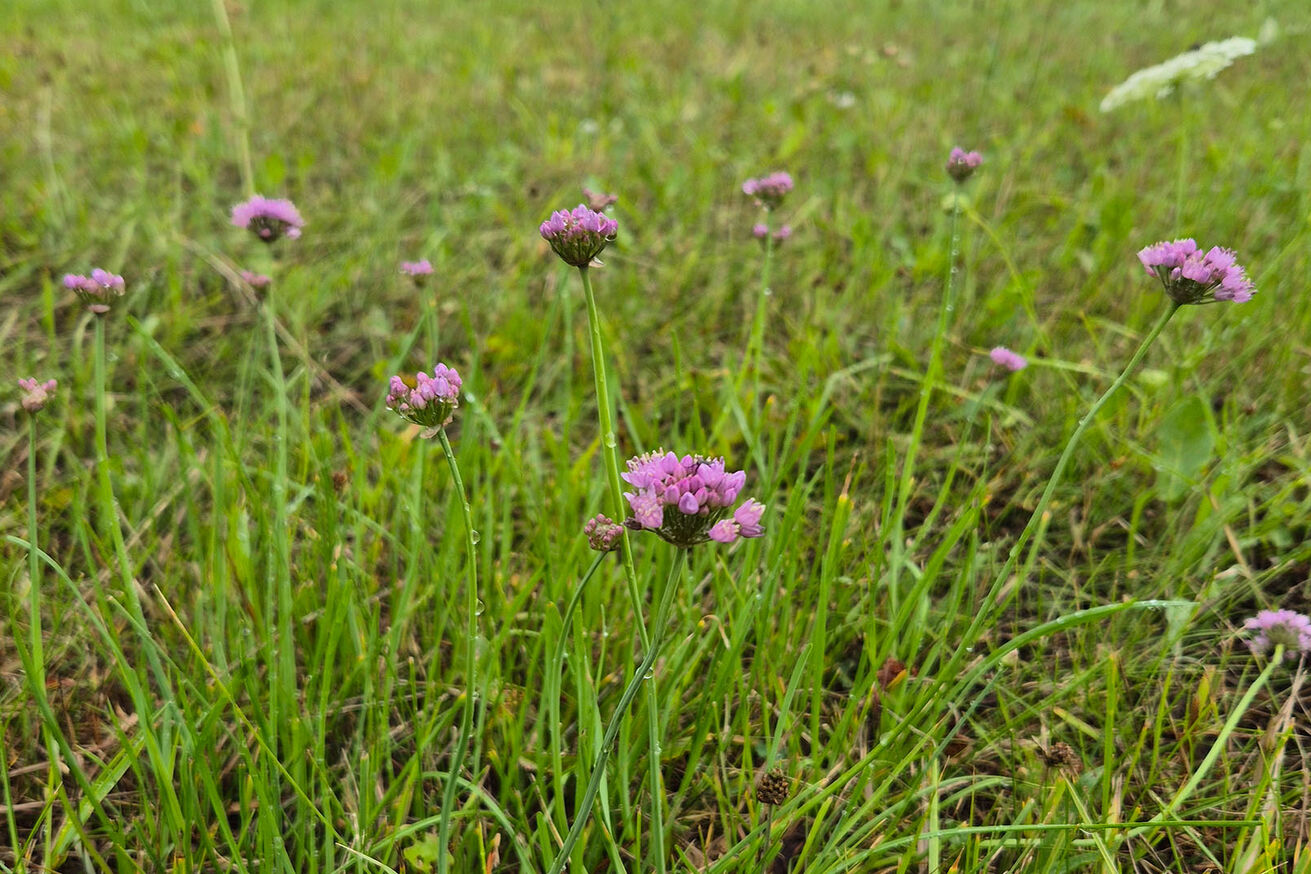 Auf dem westlichen, extensiven Feuchtgrünland wachsen die beiden in Niedersachsen gefährdeten Auenarten Wiesen-Alant und Kantenlauch.
