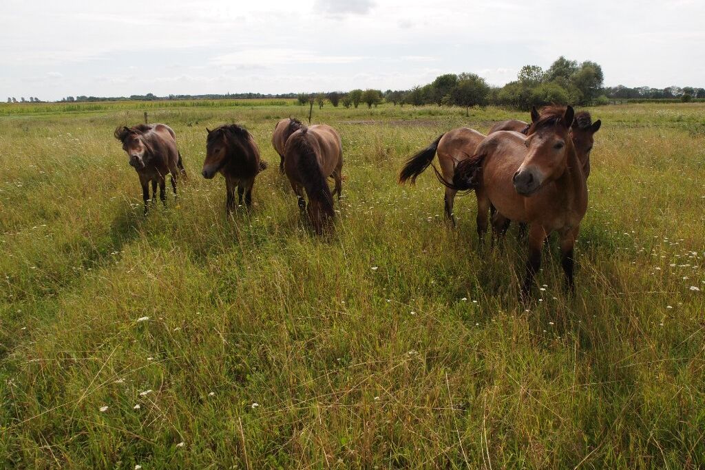 Die Arten der Stromtalwiesen kommen noch auf Stiftungsflächen im Wulfener Bruch in Sachsen-Anhalt vor: Brenndolde, Flohkraut, Echter Eibisch, aber auch Wachtelkönig, Rohrweihe und Braunkehlchen sind hier beheimatet. Koniks und Robustrinder weiden auf den Flächen, die der NABU Köthen betreut.